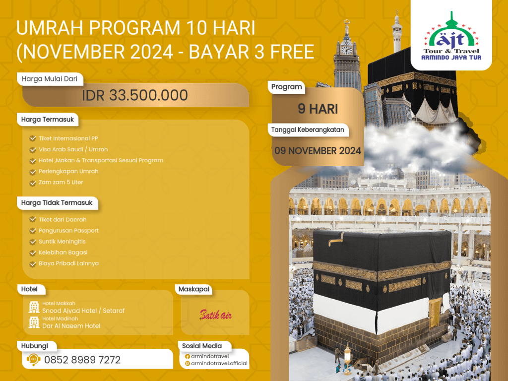 UMRAH PROGRAM 10 HARI (NOVEMBER 2024 - BAYAR 3 FREE 1)