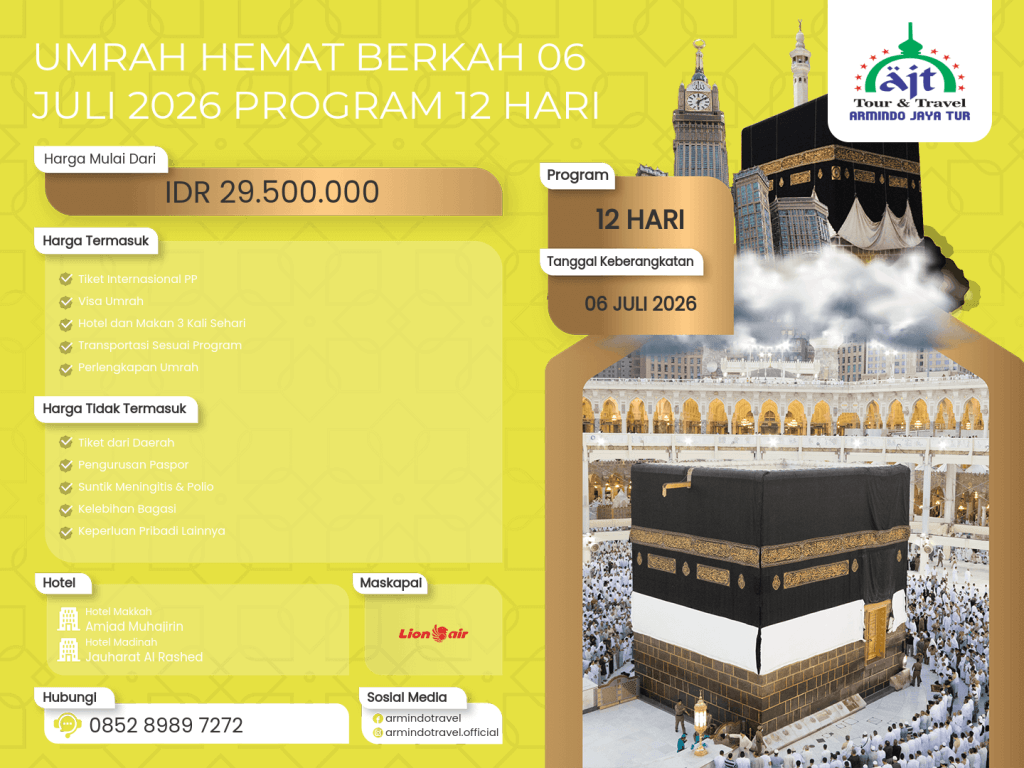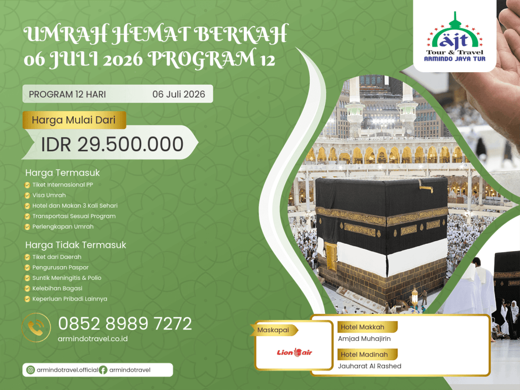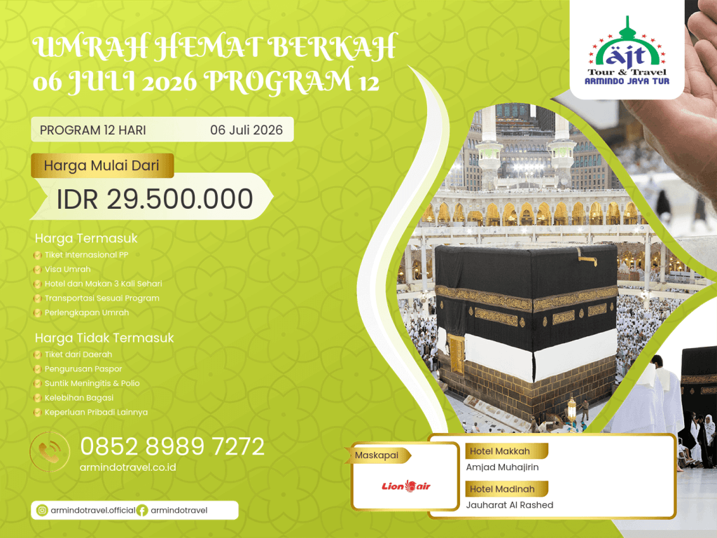UMRAH HEMAT BERKAH 06 JULI 2026 PROGRAM 12 HARI ARMINDO JAYA TUR