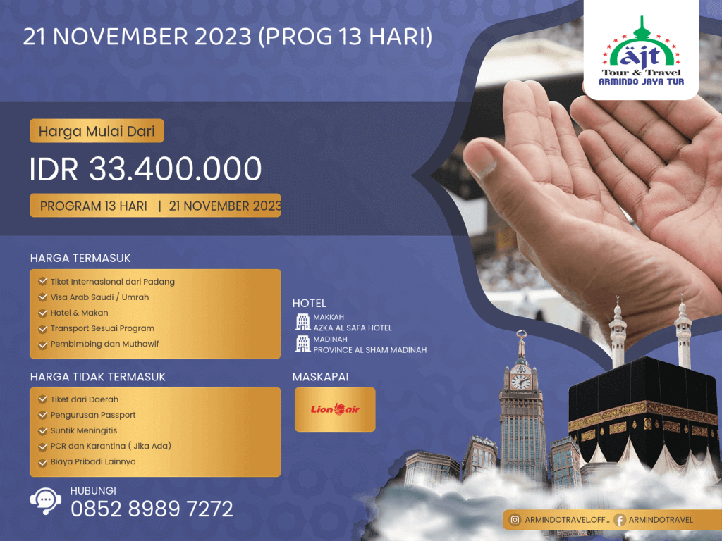 - Pelunasan Min 1 bulan sebelum keberangkatan