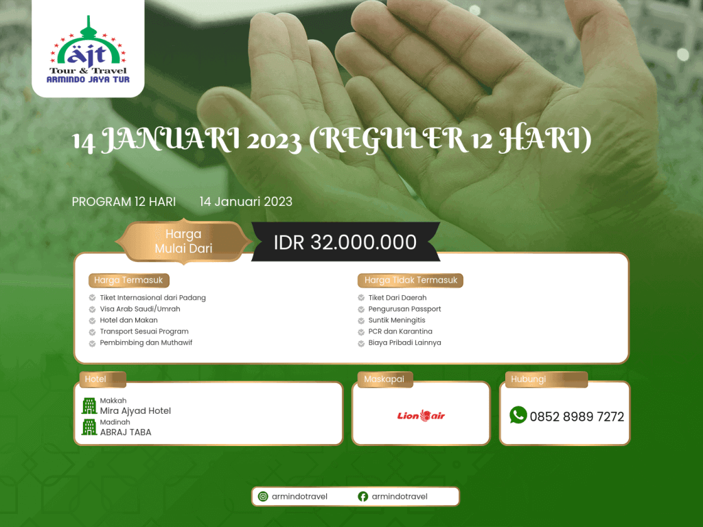 - Pelunasan Min 1 bulan sebelum keberangkatan